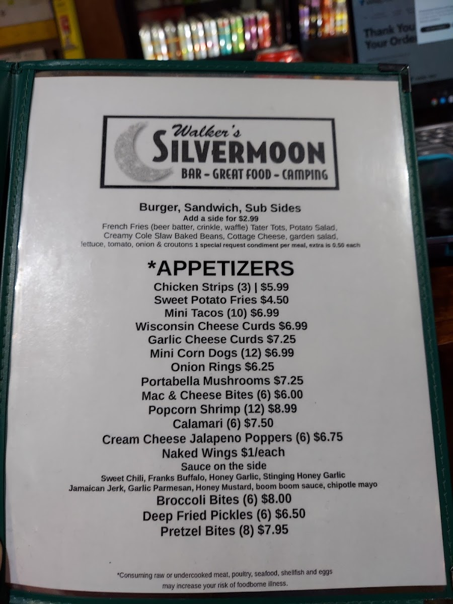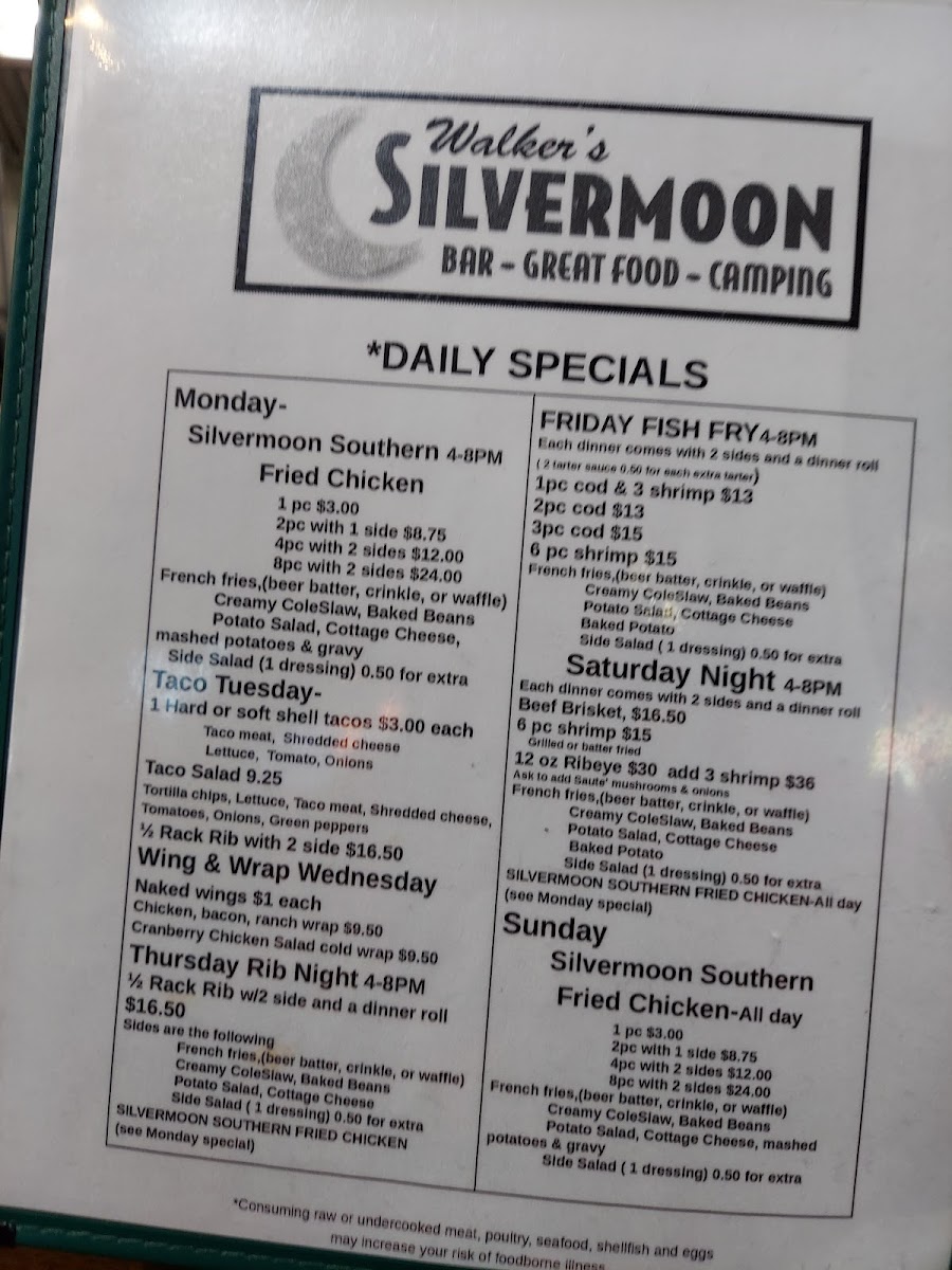 Introducing the menu of Walker's Silvermoon, a charming dining spot nestled in Alma, Wisconsin. This establishment has quickly gained popularity thanks to its delightful offerings and friendly atmosphere. Guests rave about the Southern Fried Chicken and the delicious Fish and Shrimp, showcasing the kitchen's mastery of flavor and presentation.